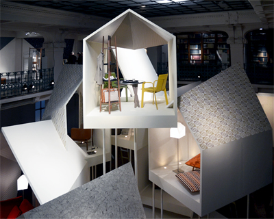 the Hermès collection of furniture pieces by philippe nigro were presented in an installation of seven structures which each took on the symbolic shape of a houseimage © designboom