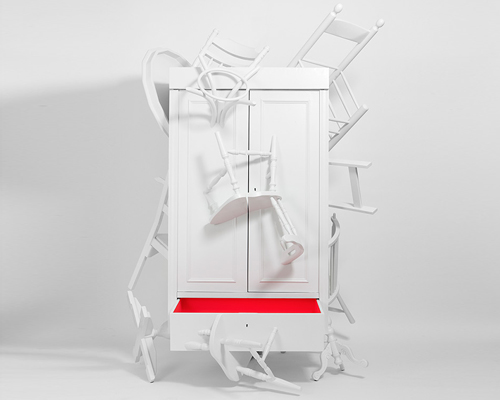 the ‘trash closet’ by dutch designers marijke & sander lucas is a cabinet made from leftover furniture found on the streets of amsterdam, the netherlands that would normally end-up in a landfill. by incorporating the recycled pieces into a functional and unusual storage unit, they seek to inform individuals about the global furniture-waste crisis. exploring the possibility of creating high-end items from things such as discarded chairs and tables, the project aims to help people become more environmentally conscious. ‘the trash closet’ was made from discarded items that could be deemed as useless, but can actually serve as an educational tool. the final prototyping, production, and conceptualization was sponsored by dutch design only and is available as a limited edition.