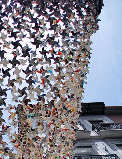 view of the shadow cast by the hanging sculpture, ‘san francisco street shadow’, alicante, spain