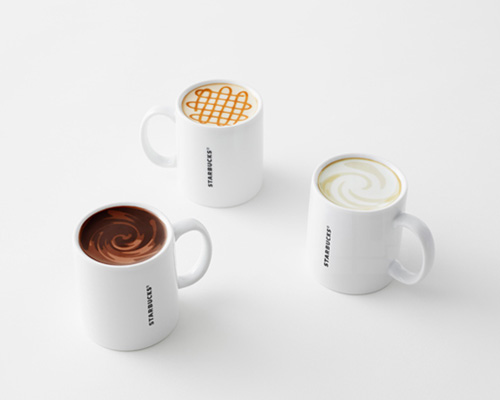 nendo has created a simple intervention for the classic white starbuck’s coffee mug that represents the global coffee company’s view of feeling ‘fulfilled, and seeing the glass as half-full, never half-empty’. graphics of either a starbucks’s americano, latte or caramel macchiato can be found at the base of the cups so that when they are drying or are stored upside down in your cupboard, they appear to look as if they are actually full – a visual reminder to always have a positive mental attitude. the mug collection is being sold at starbucks japan shops starting march 19th, 2014.