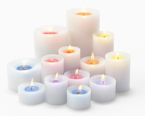 the wax changes to yellow then orange, red, purple, and finally to blue