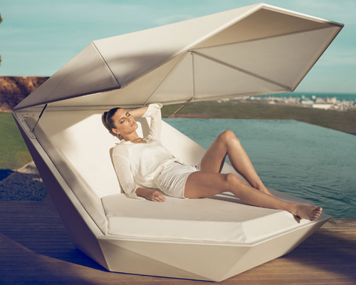 the sunbed draws its form from minerals found in nature, in this case crystallized quartz