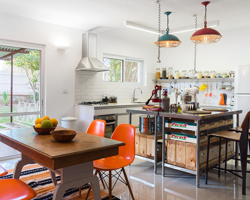 a house in a moshav, israel — originally built in 1951 for a jewish immigrant family from libya — has been reimagined by porat-based interior designer and architect rotem guy. the existing structure was a tiny unit, typical of the residences built in those years. as the family living there grew, the house was enlarged to suit their needs. in its renovation process, guy preserved the abode’s central elements, which embodied it throughout the years and became an integral part of its form and content. the weaving of new content accommodates the for its new lodgers – a cook and a designer.