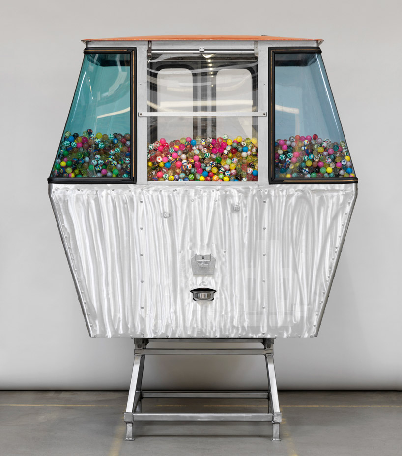 design miami basel 2013 presented the ‘vernier mountain climbers exhibition’, conceived and managed by three young entrepreneurs from geneva – inès flammarion, nicolas bernheim and albert schrurs. the project is a collection of vintage ski gondolas from verbier, switzerland which have been re-imagined and adapted into new, unique objects by seven of switzerland’s most recognized designers and artists. one of the more unusual and whimsical solutions displayed at the event was baker wardlaw’s ‘vending machine’.