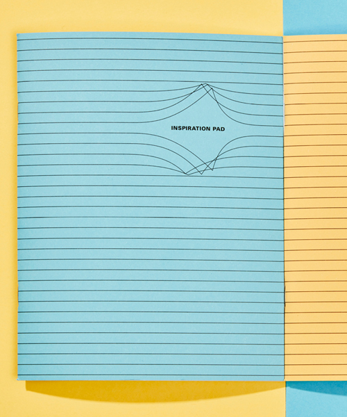 ‘the ‘inspiration pad’ was born while I was working in an advertising agency,’ comments the designer. ‘I was drawing projects in a notebook when suddenly it hit me how a classic notebook, however beautiful, is always very rigid and grid-like. by turning the blue lines upside down, I wanted to make one that would inspire people, and to give them more freedom than their school notebooks did.’