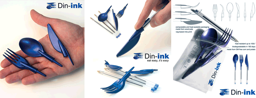 a set of pen tops that turns your ‘writing tool’ into a knife, fork and spoon during the lunch break. images © designboom