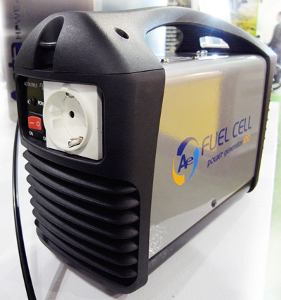 image © designboomthe portable hydrogen power generator can be recharged in a short time, simply by connecting it to the acta energy hydrogen generator.