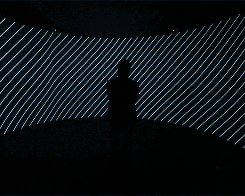russian artistic collective TUNDRA have recreated the big bang in an interactive audiovisual installation with quadrophonic sound entitled ‘the void’. presented at loft project ETAGI gallery in saint-petersburg, the intervention visualizes the idea of emptiness within a 360 degree panoramic display, projecting patterns and sequences of light when participants stand still for extended periods of time. one slight flinch, and the sequence stops, and starts again. ’emptiness here isn’t regarded as an absence of everything, but as an initial state when anything can appear’ says TUNDRA. ‘to see the dark room turn into the big bang epicenter a visitor should become ’empty’. in order to capture the essence of the visual experience, the space is outfitted with sophisticated sensors to detect the slightest movements and sounds, training visitors to relax and stay completely static.