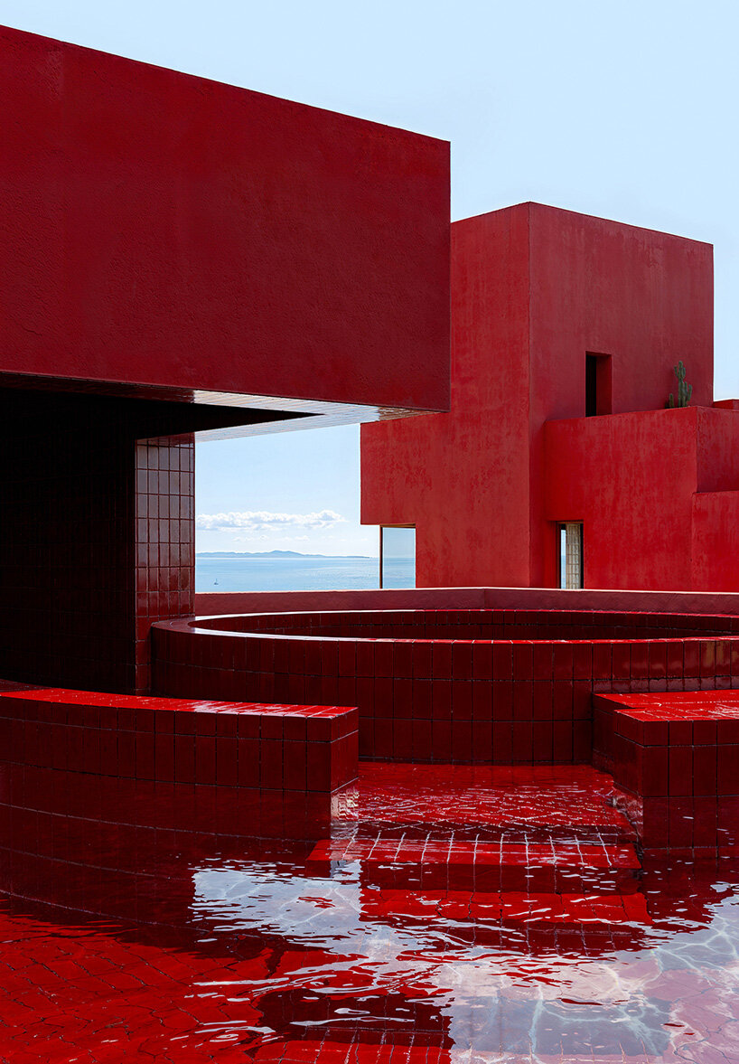 from afar, the striking geometric massing appears to float above the lush terrain
