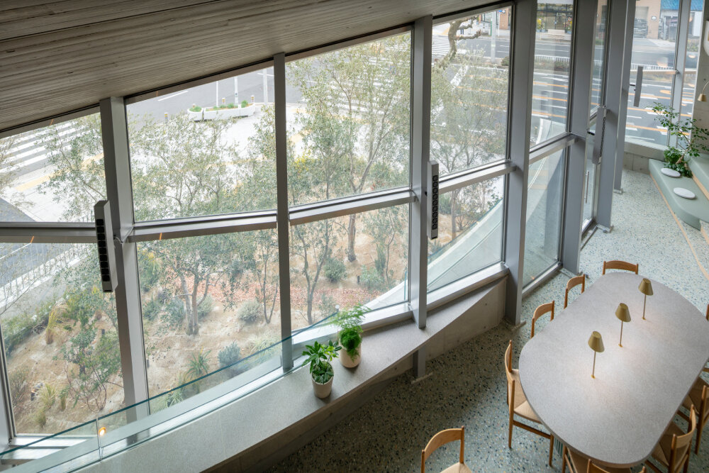 the café is split across three porous levels