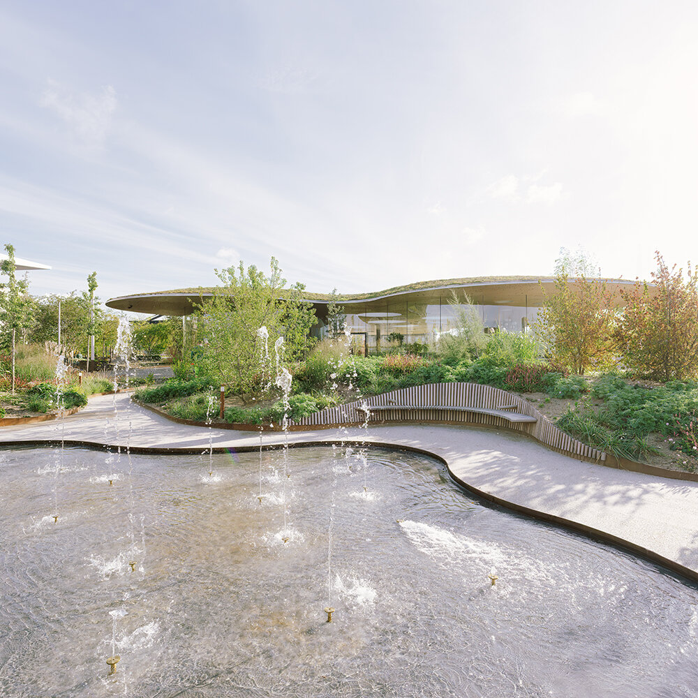 Once a modest green lawn, The Opera Park consists of six gardens from various parts of the world: the North American Forest, the Danish Oak Forest, the Nordic Forest, the Oriental Garden, the English Garden, and the Subtropical Garden housed within a greenhouse and atrium at its center. The diverse gardens hold surprises such as a fountain, a water lily pond, and a reflecting pool where drops of water from a mast gently strike the water’s surface in a soothing rhythm. Meandering paths and organically shaped flowerbeds knit together the park’s elements. ‘The Opera Park is a place where nature comes first amidst Copenhagen’s bustling urbandevelopment,’ shares COBE founder Dan Stubbergaard. ‘With its six gardens, winding paths, and carefully crafted viewpoints, the project seizes elements of Copenhagen’s historical, romantic gardens to tackle today’s challenges such as decline in biodiversity and water management.’