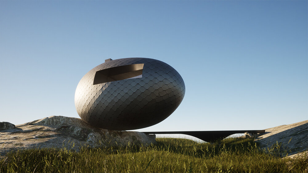 a continuation of the existing rock formations, the hotel is articulated as a series of stepped horizontal planes, courtyards, and gardens.