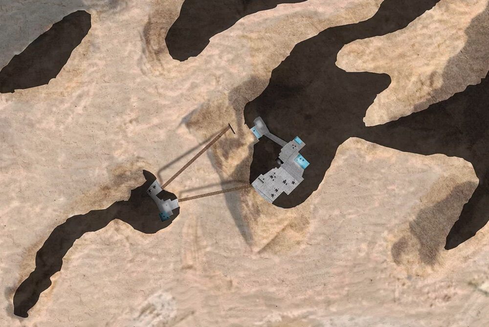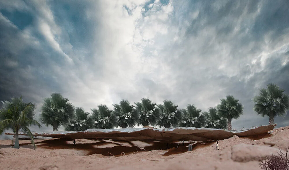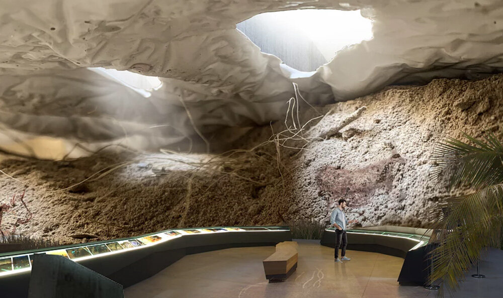 a continuation of the existing rock formations, the hotel is articulated as a series of stepped horizontal planes, courtyards, and gardens.