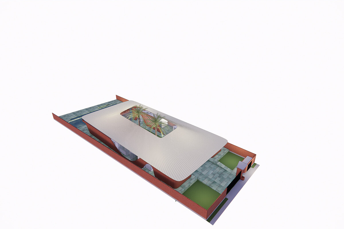 a continuation of the existing rock formations, the hotel is articulated as a series of stepped horizontal planes, courtyards, and gardens.