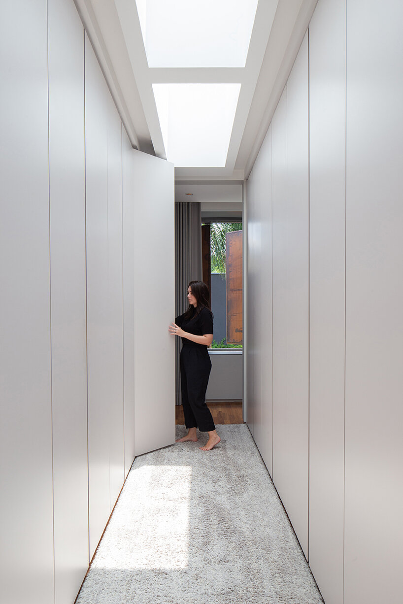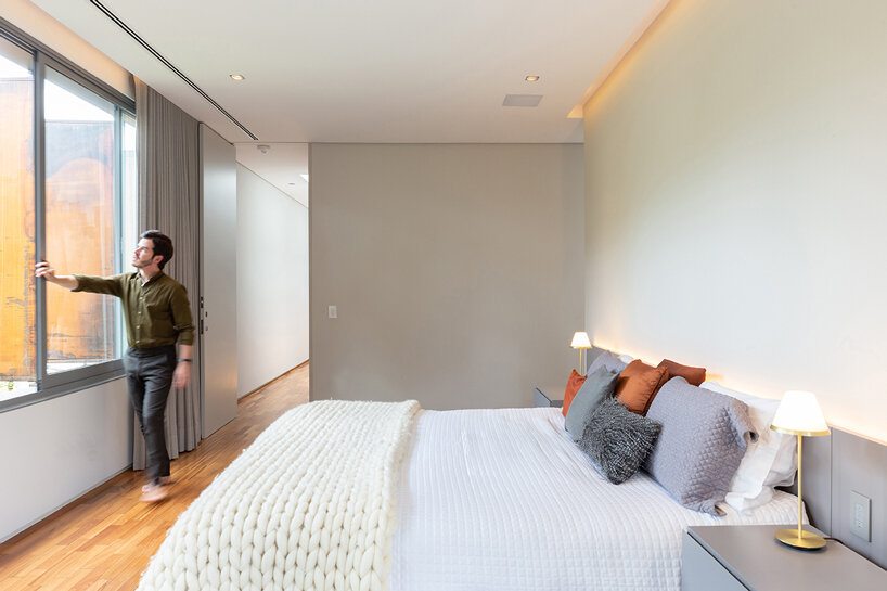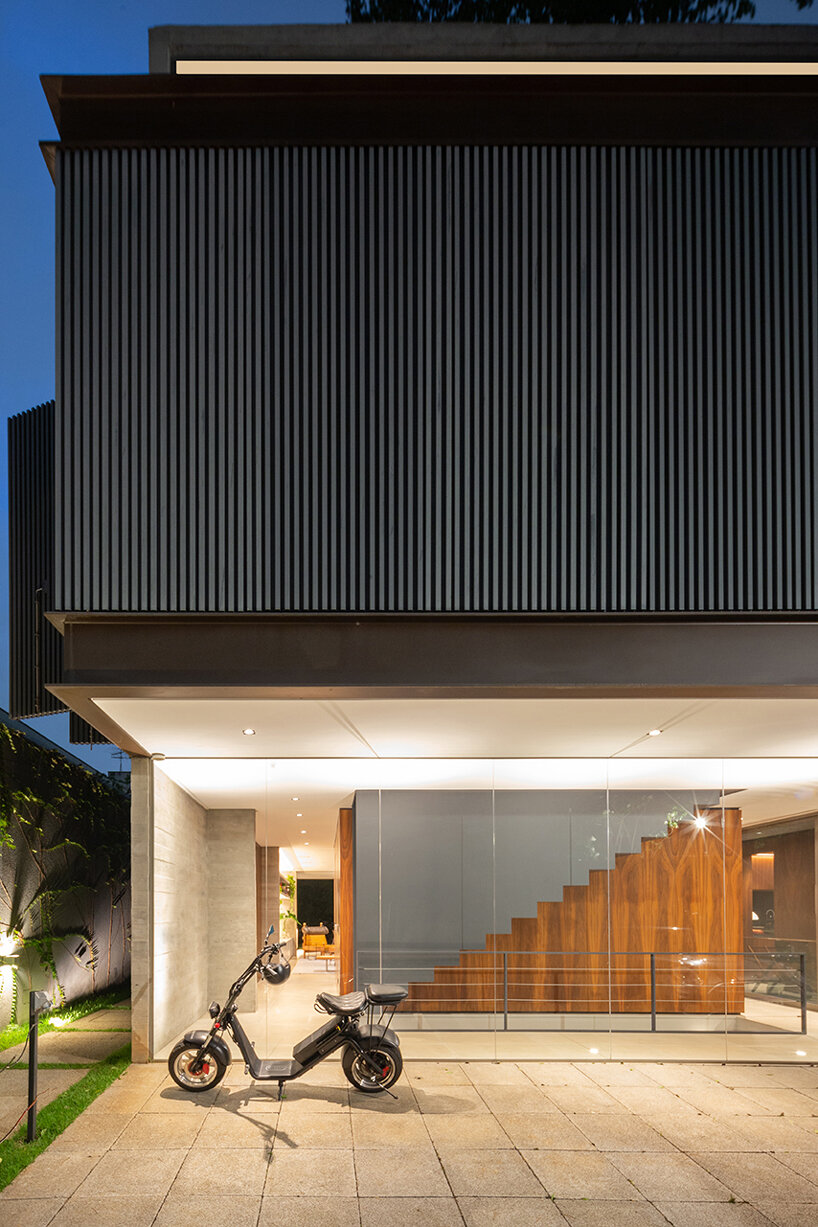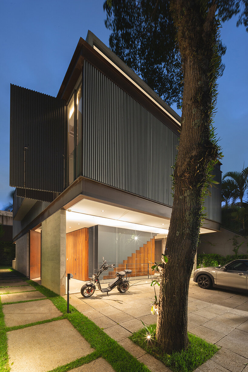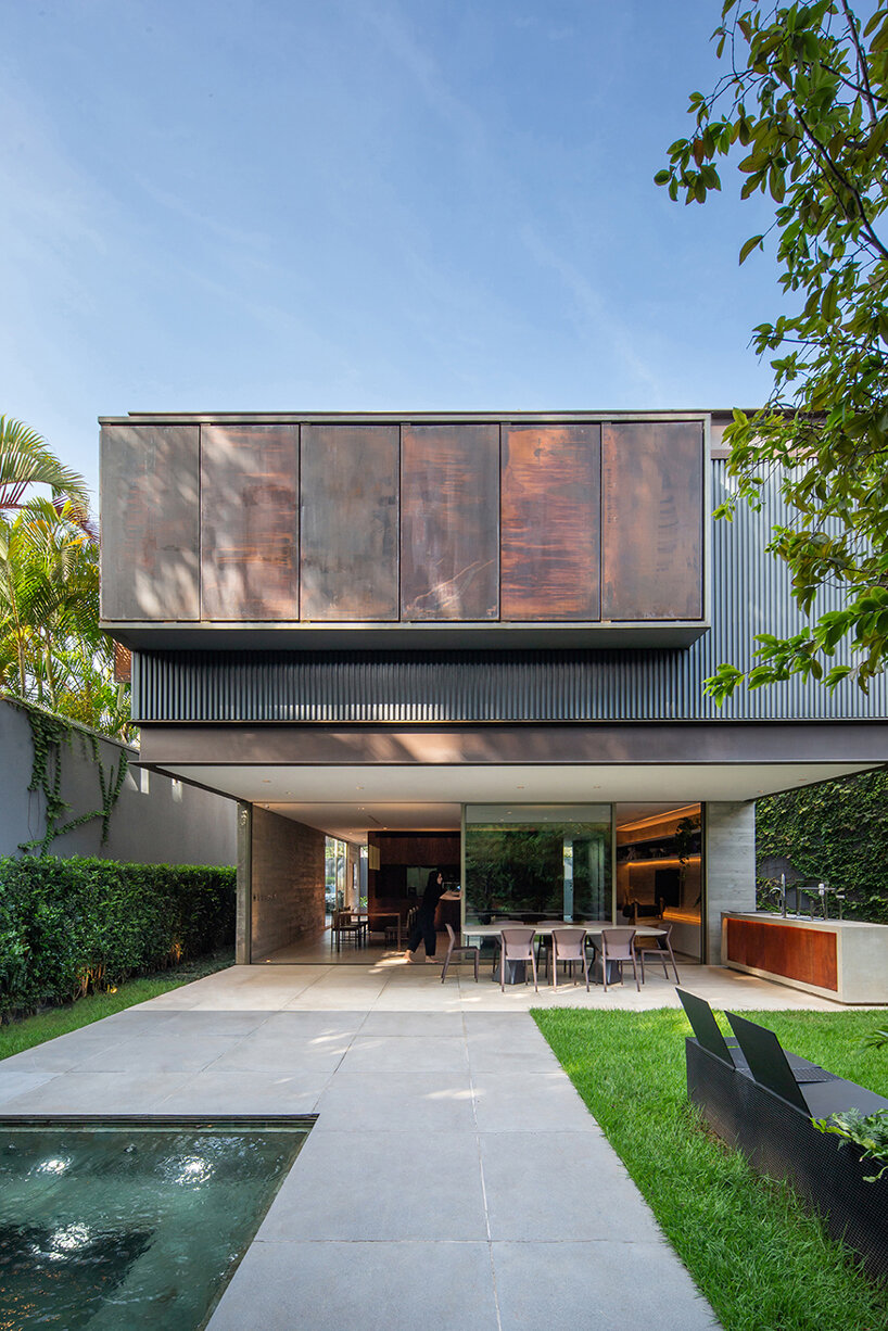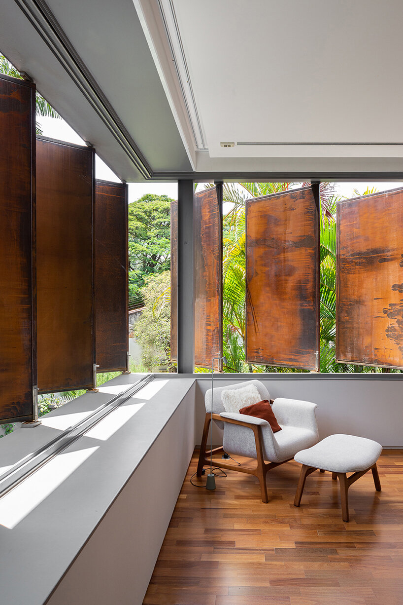 operable metal panels afford both privacy and openness for bento house in brazil