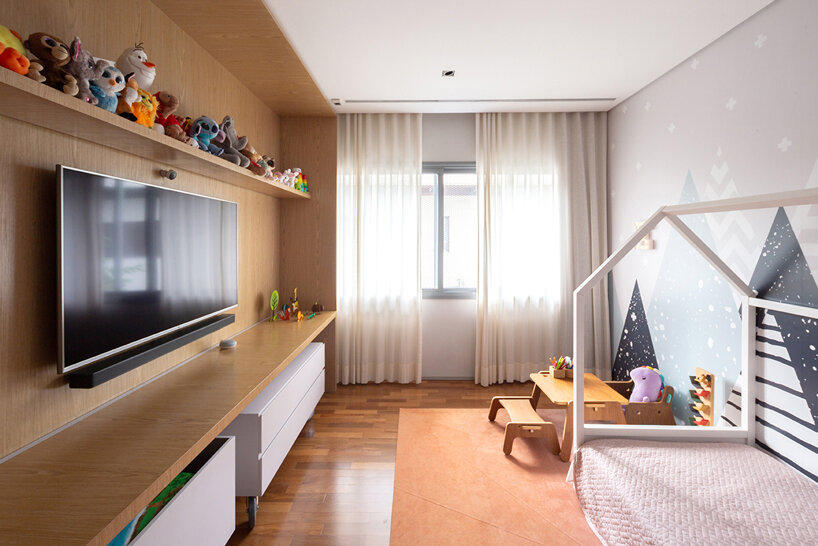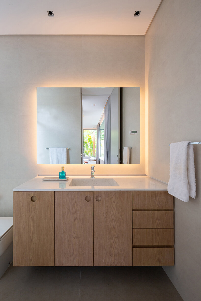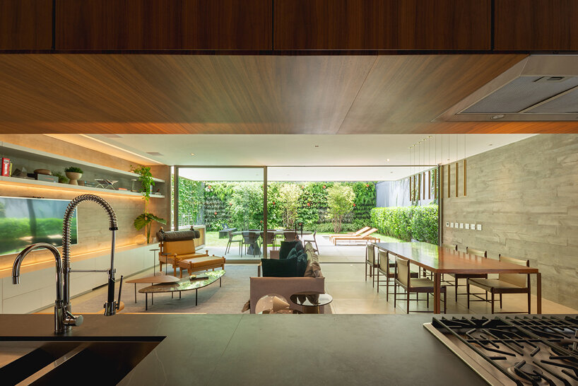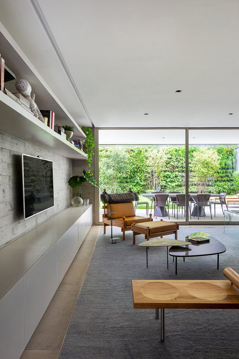 FCstudio strikes the perfect balance between privacy and openness for this contemporary residence in São Paulo, Brazil. Designed for a young couple and their two daughters, ‘Bento House’ establishes two different relationships with its surroundings. From the street-facing elevation, ‘Bento House’ is discreet while the rear façade opens up to a lush garden oasis.