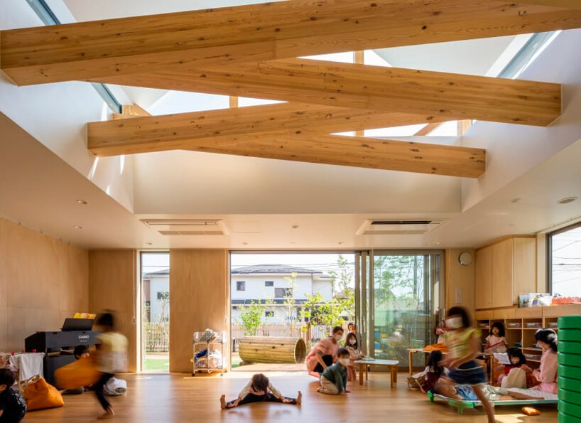 wood envelops the entire building in a child-friendly, inviting ambiance