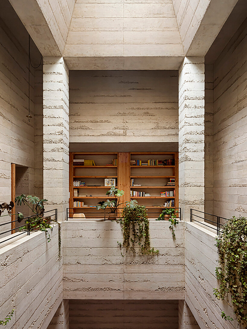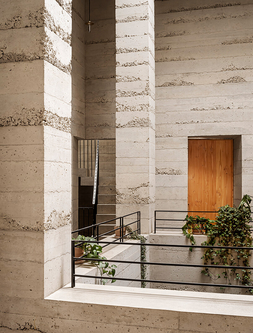 thick, low-cement concrete walls provide thermal stability and absorb irregularities of the plot