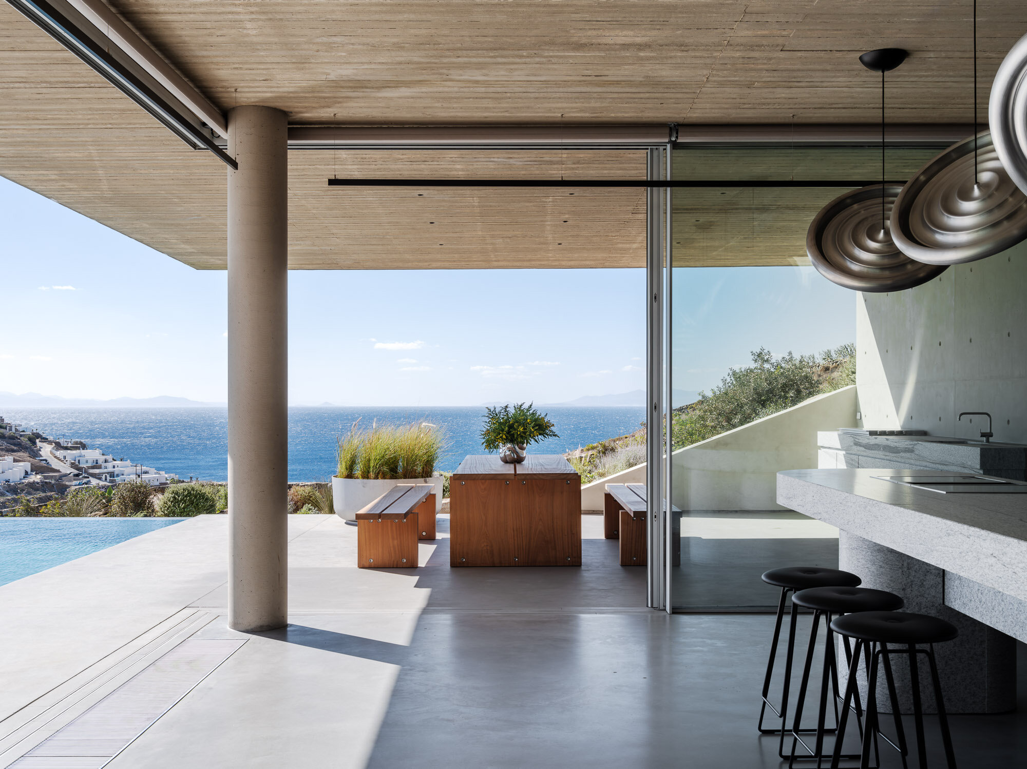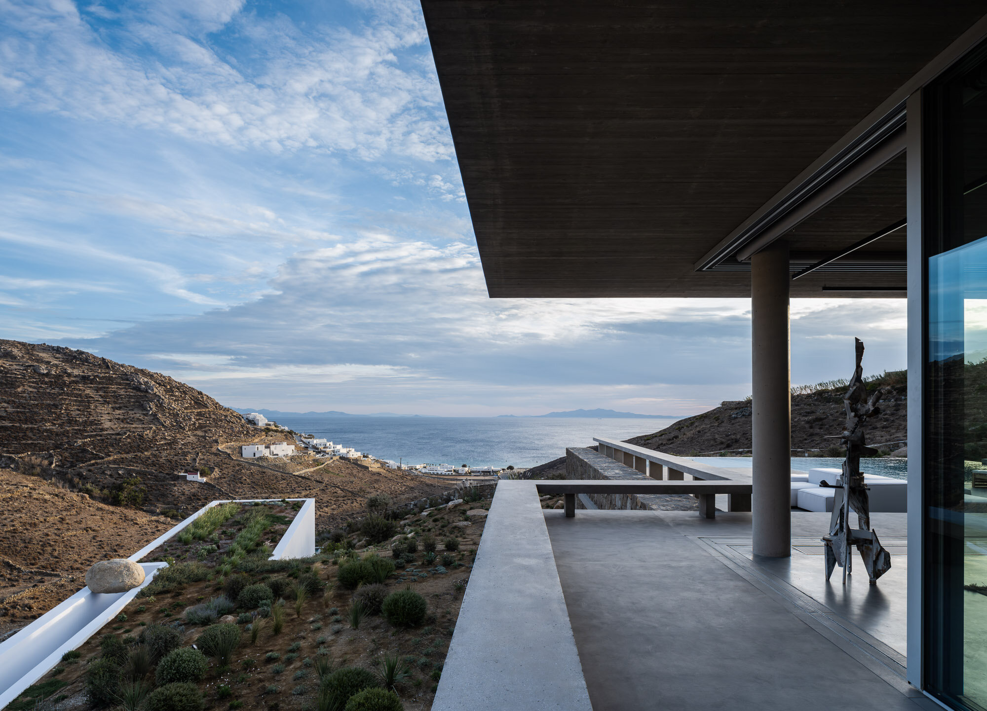 the villa celebrates the harmony between built design and Mykonos’ rugged environment