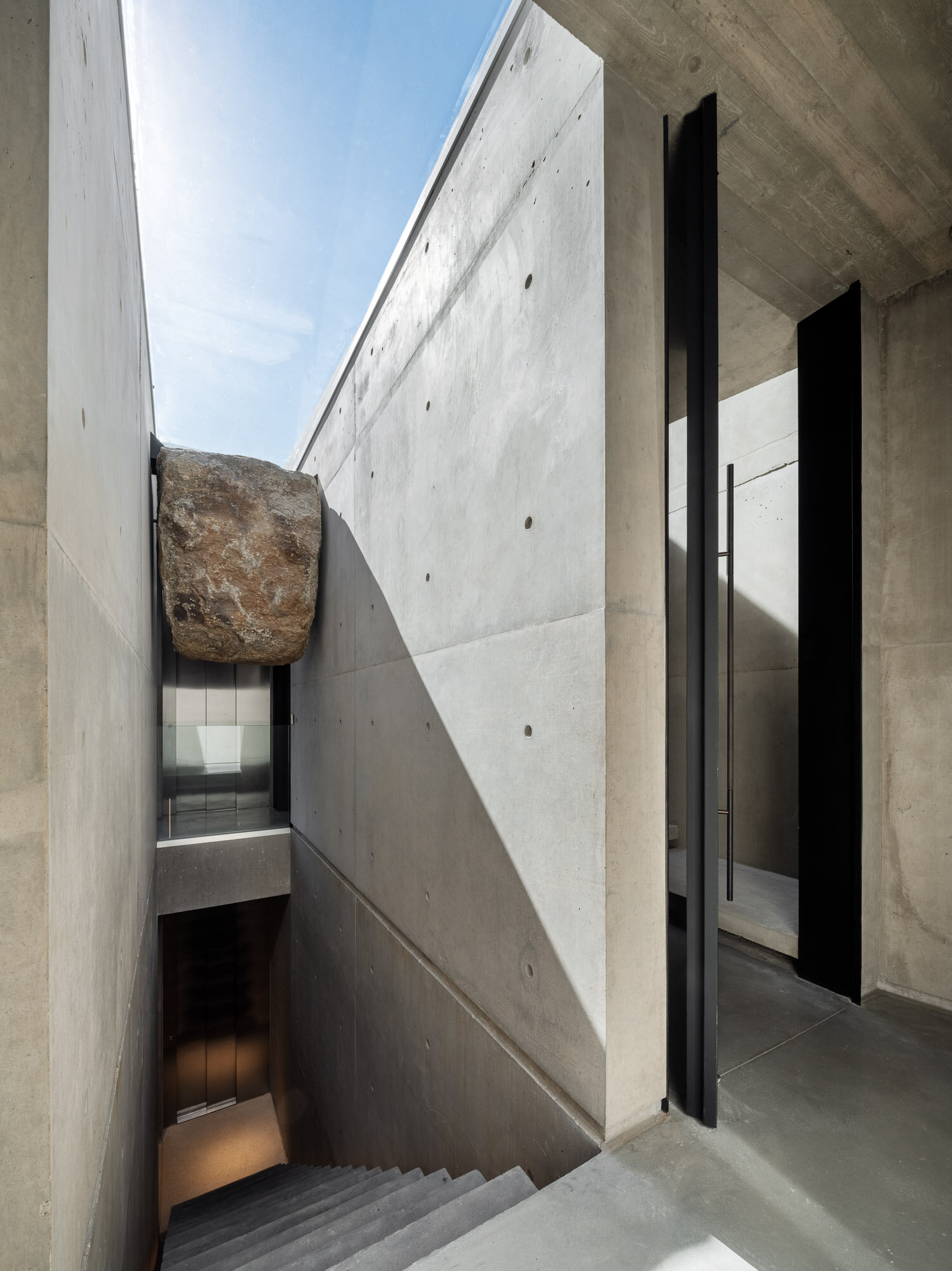 the design draws from the traditional construction technique of retaining walls often found in Greek islands