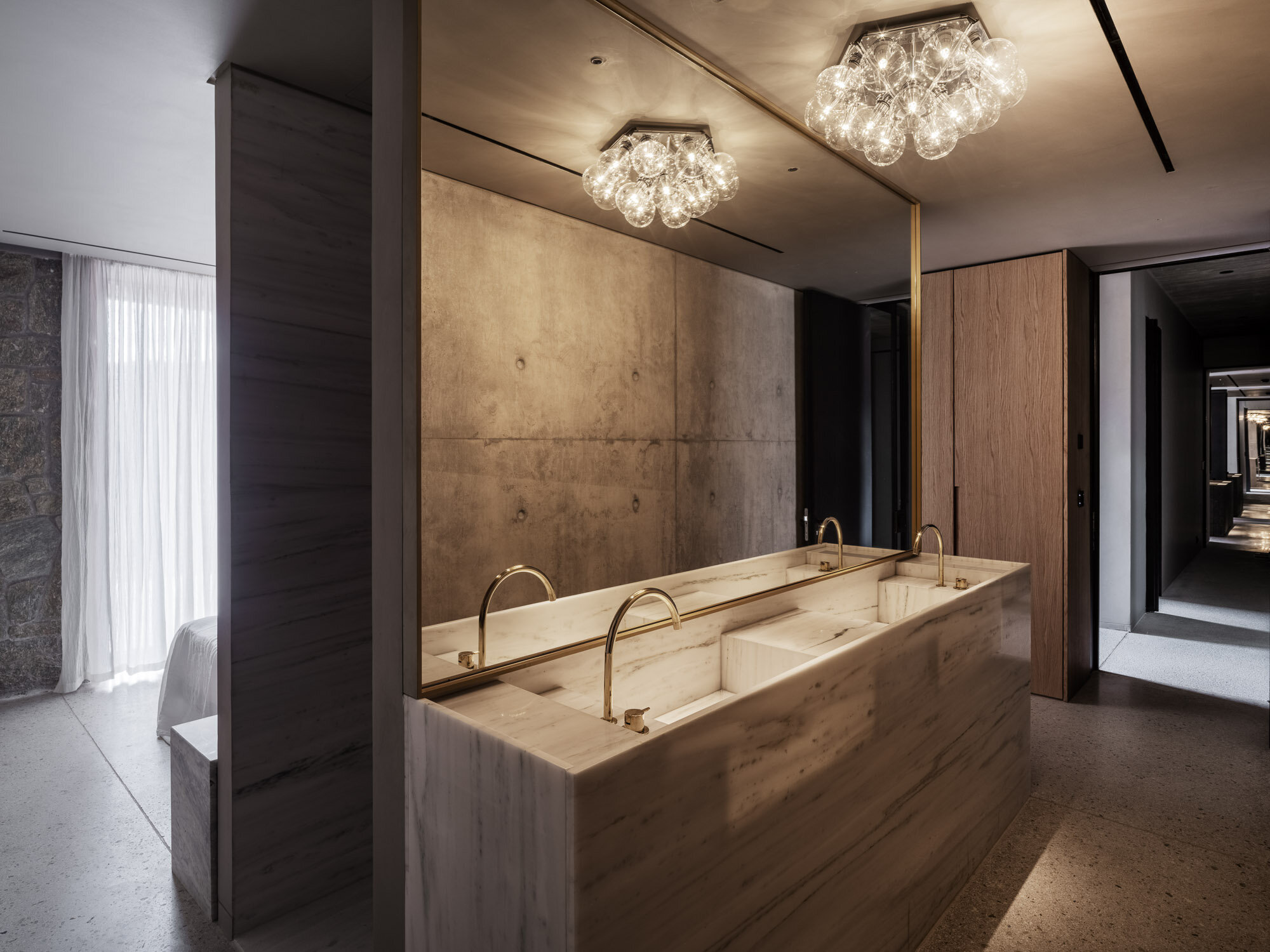 a continuation of the existing rock formations, the hotel is articulated as a series of stepped horizontal planes, courtyards, and gardens.