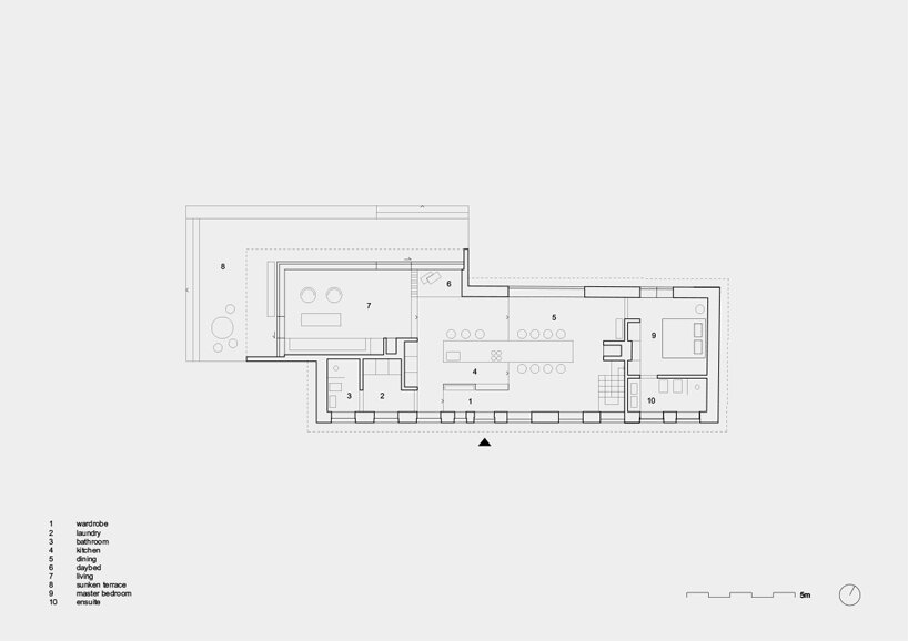 a continuation of the existing rock formations, the hotel is articulated as a series of stepped horizontal planes, courtyards, and gardens.