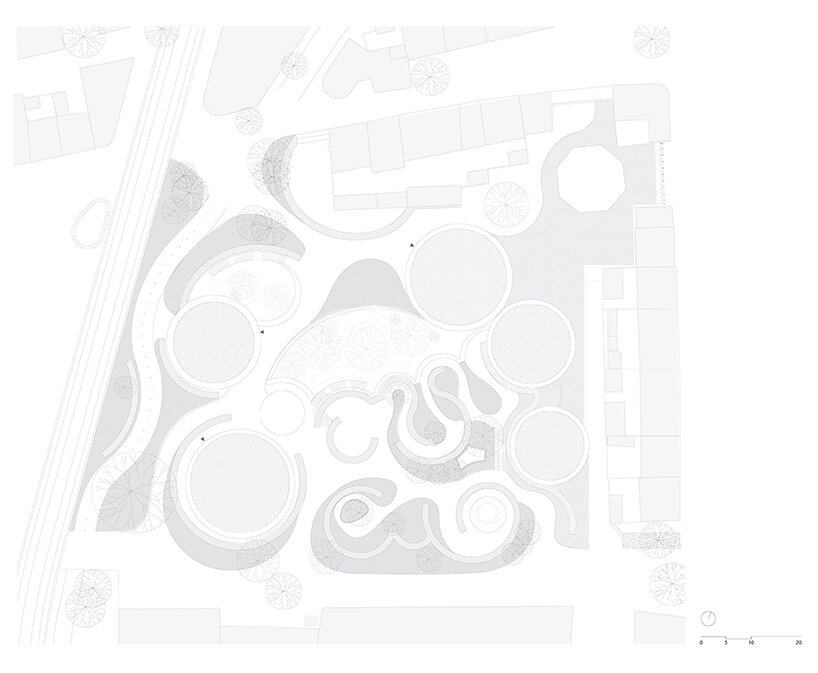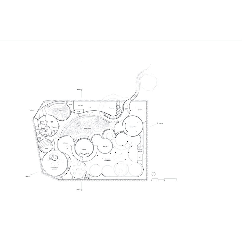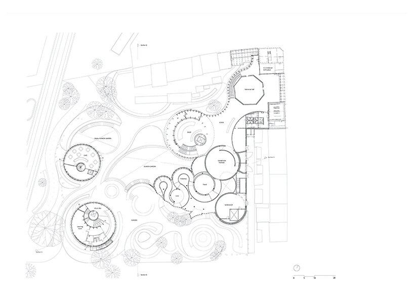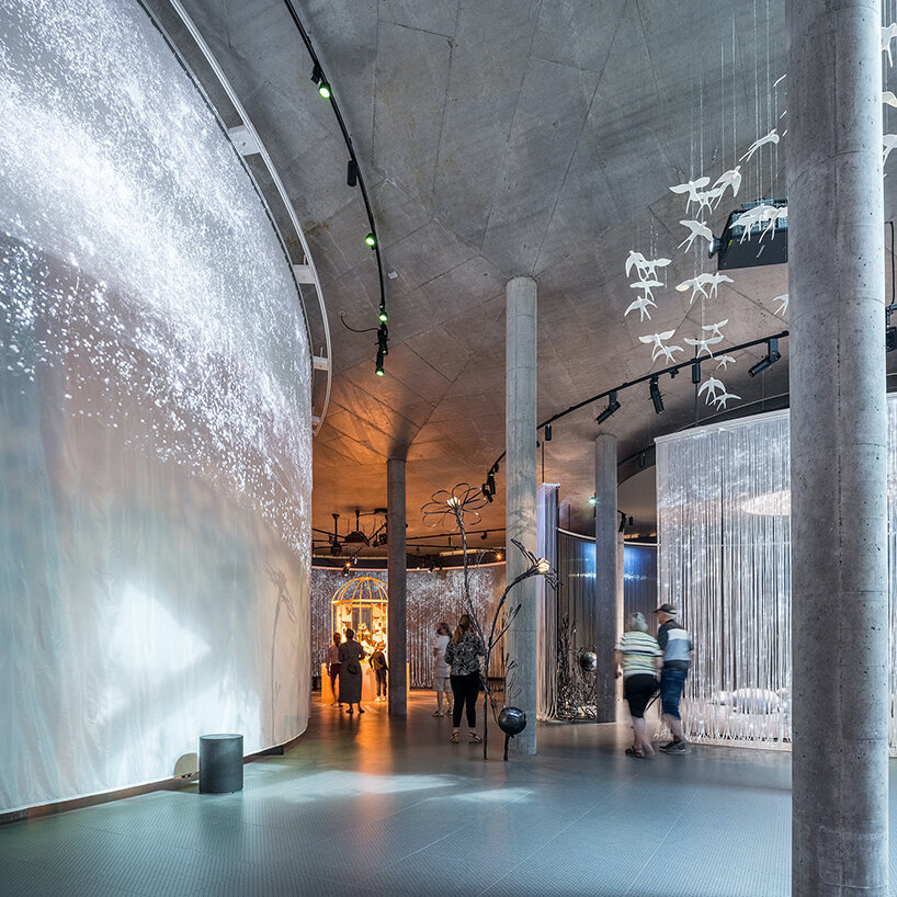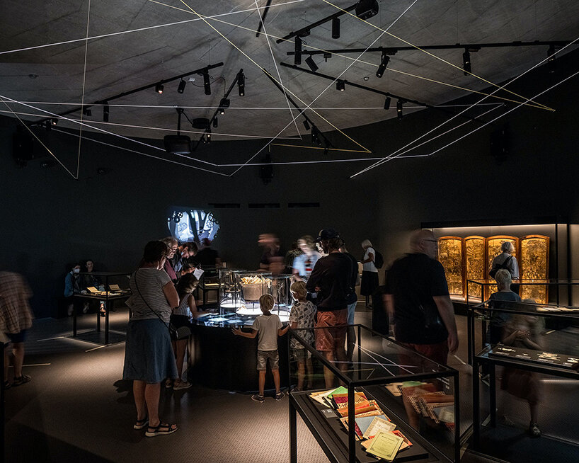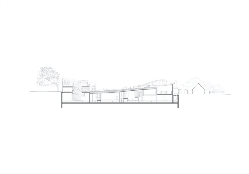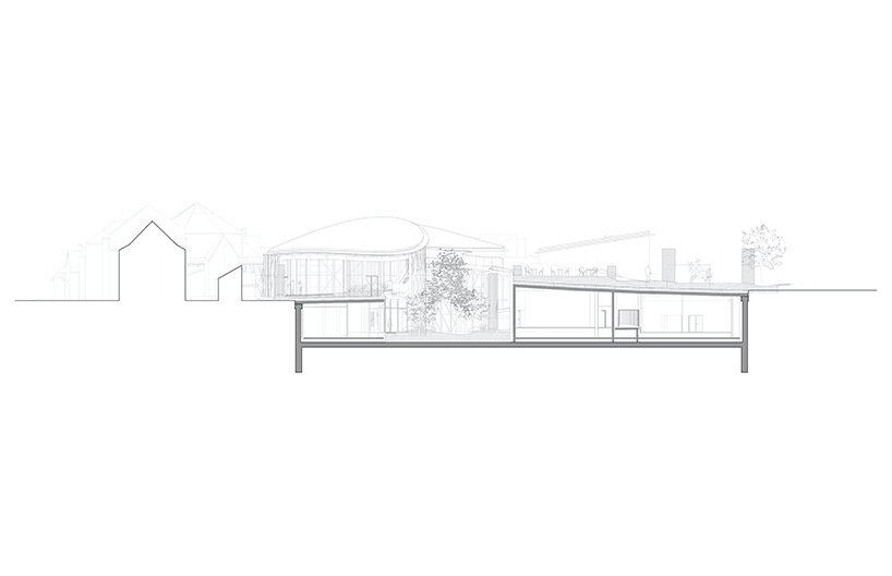café and retail spaces are at street level, while the exhibition areas are underground