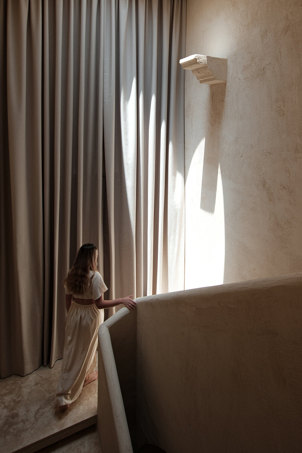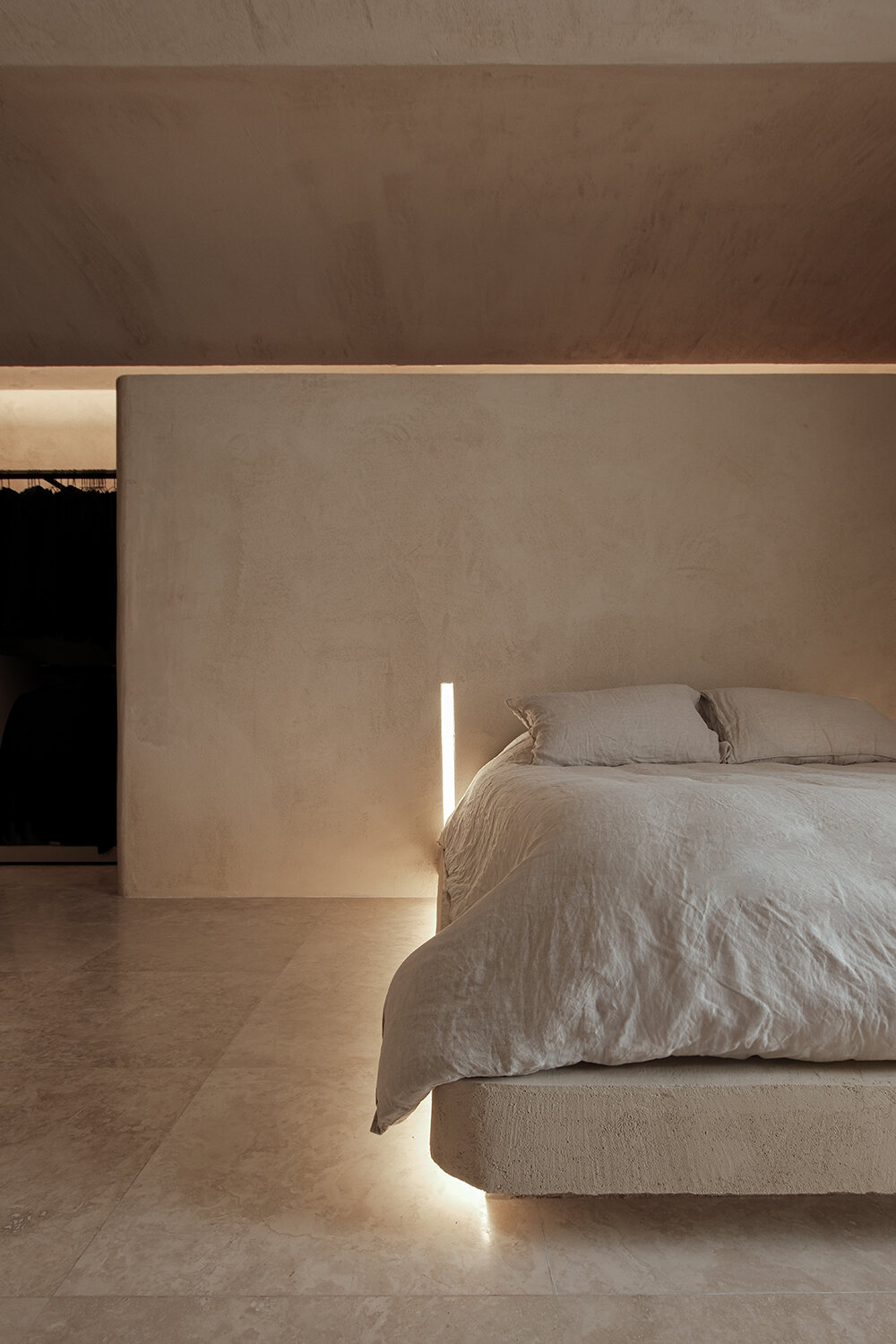 Tucked in between buildings in Rabat, Malta, the twentyfour residence is conceived as a reimagining of conventional architectural norms by Maltese architect and designer Maurizio Ascione. The project, completed earlier this year, carefully pairs timeless, local aesthetics with a modern sensibility, resulting in a subdued and primitive-like ambiance that spans every corner of the dwelling. Crafting such a minimalist appeal required a meticulous interplay of natural light and shadows backdropped by a monochrome palette. Complementing the hushed aesthetic is a strategic incorporation of curvilinear elements by 3DM to further orchestrate a sense of spatial hierarchy within the interiors.