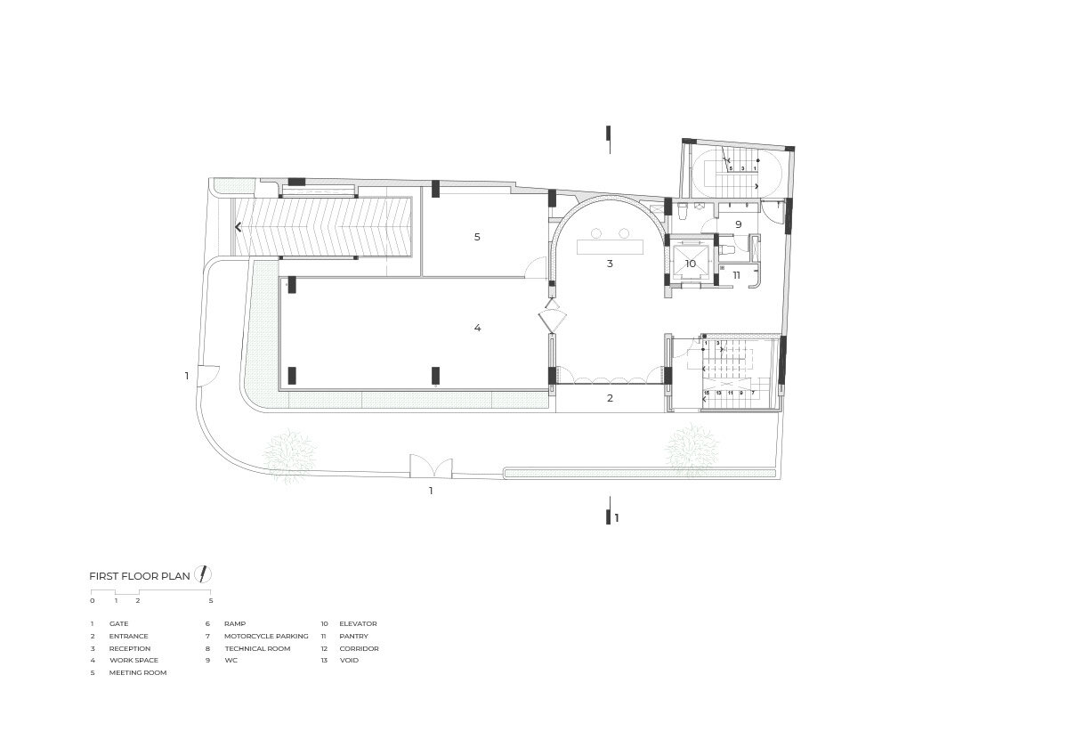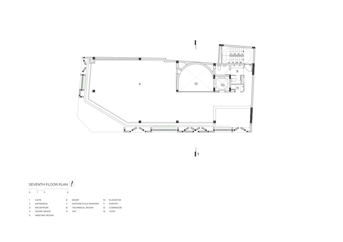 a rounded atrium lends a dramatic atmosphere