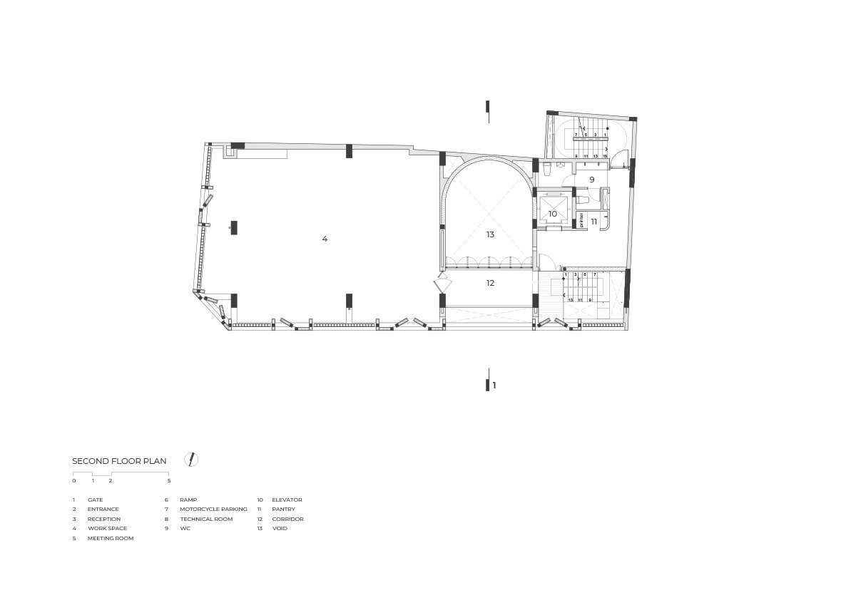 occupants experience the lofty spaces from an interior bridge, mezzanines, and balconies