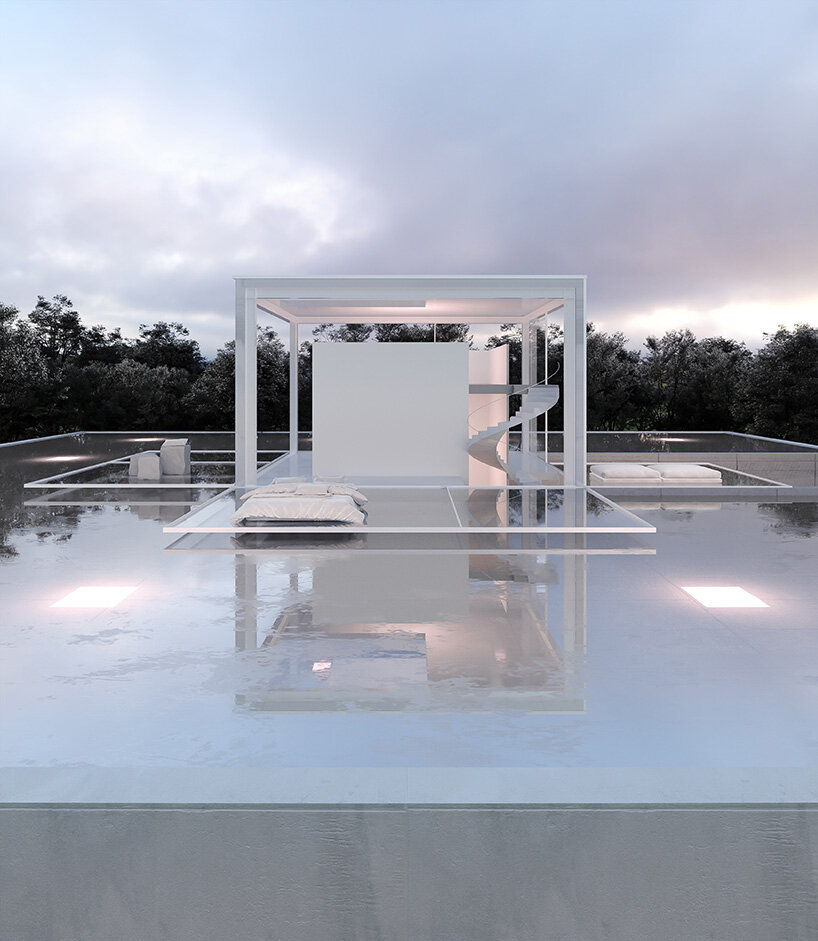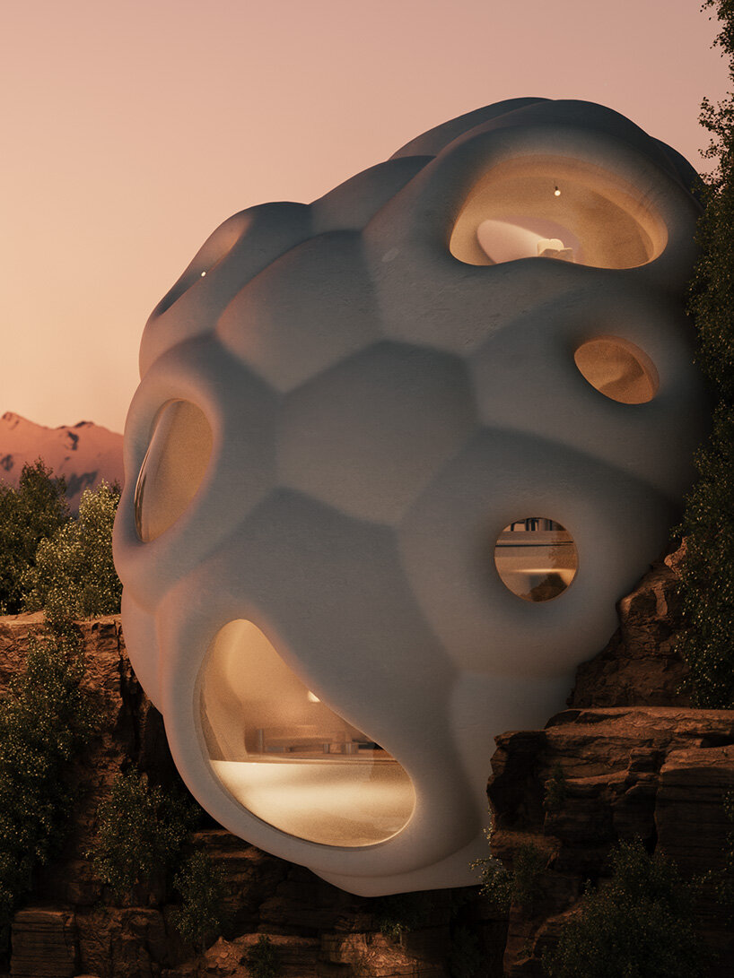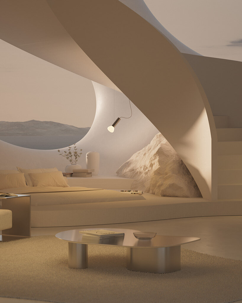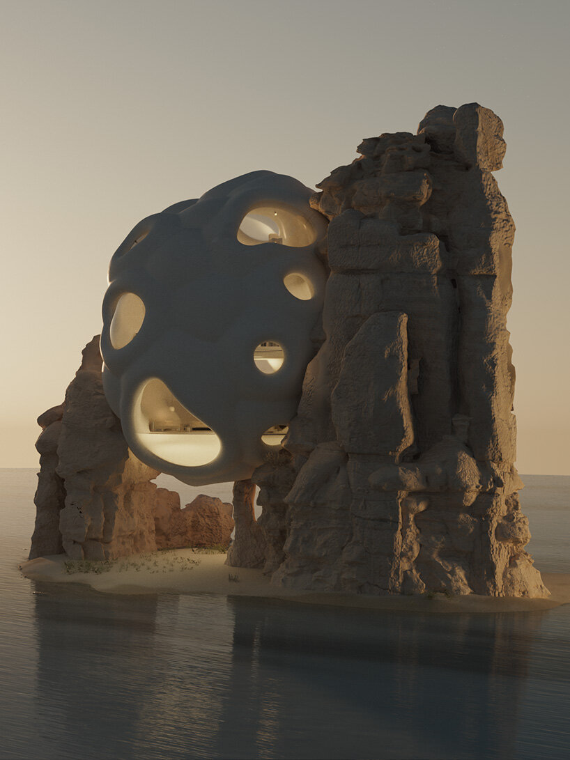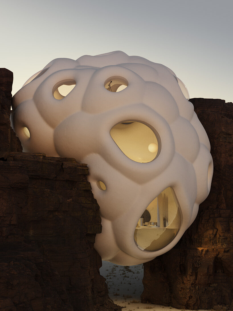 a continuation of the existing rock formations, the hotel is articulated as a series of stepped horizontal planes, courtyards, and gardens.