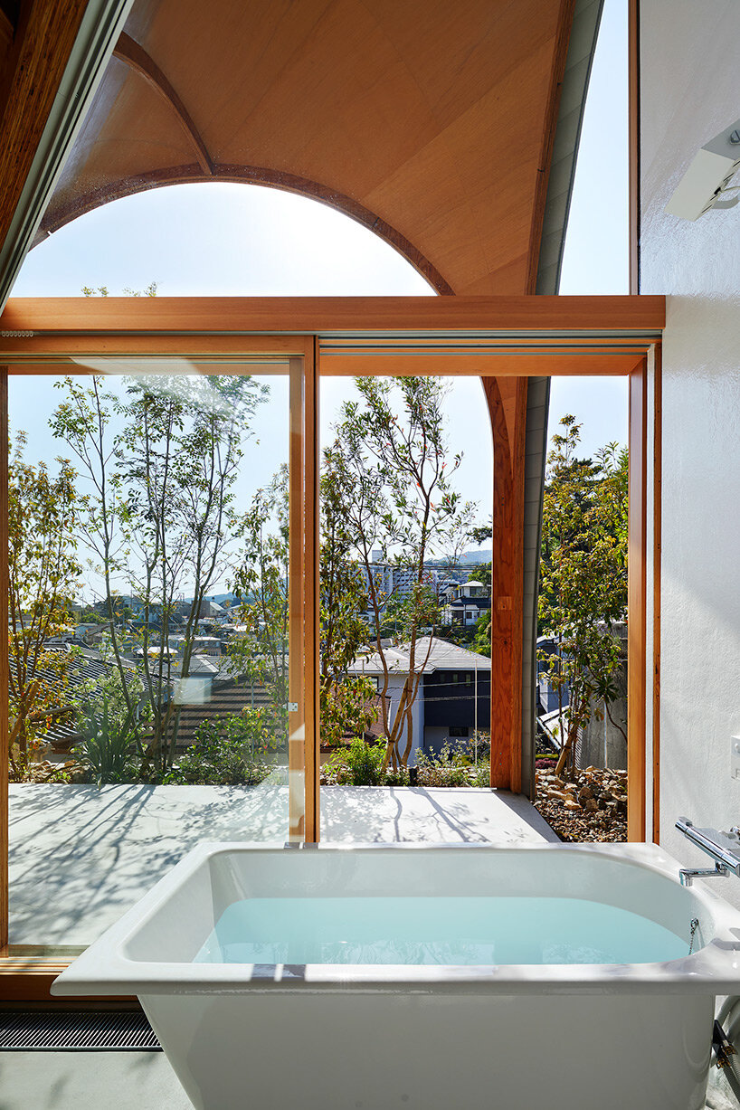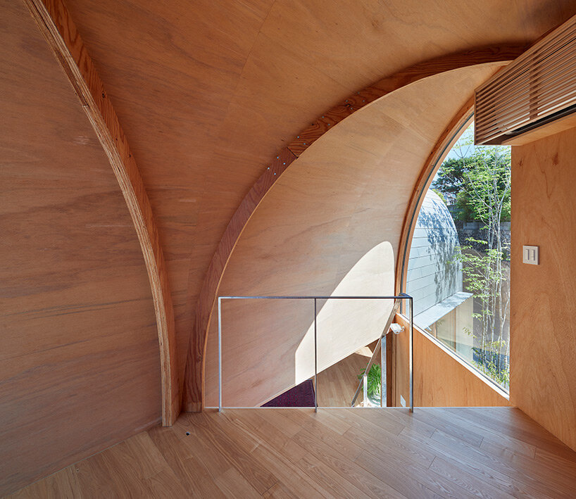 a series of tilted vaulted roofs tops wooden house by tomohiro hata in koyoen, japan a series of tilted vaulted roofs tops wooden house by tomohiro hata in koyoen, japan