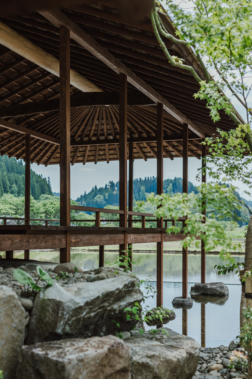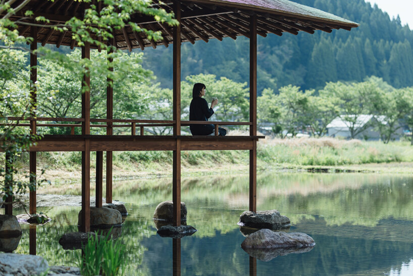 Café Takenokuma’s serene water garden invites visitors to unwind amidst nature’s beauty