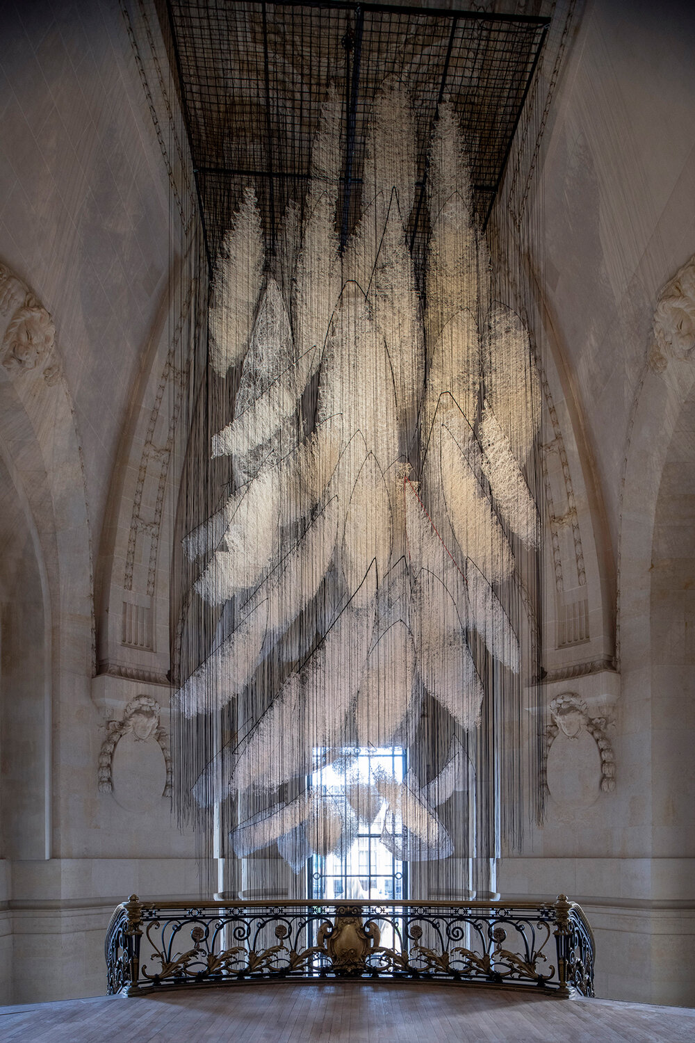 AL: Paris is a city in which you have shown before and created major works such as the installation ‘Where Are We Going?’, originally presented at Le Bon Marche which featured 150 steel armature boats in a maze of white threads levitating in space. How has the city influenced your creative process, and what unique energy or inspiration does it bring to your large-scale installations?