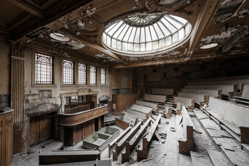 on the growing popularity of abandoned places, the photographer notes, ‘over the past two/three years, depending on the country, you can see that the number of people interested in abandoned places has completely exploded. thanks to social media mainly I think. instagram, youtube, twitter, or even tik-tok are now the only medium for young people to visit derelict locations, photography is not something useful anymore. they see it as a type of video which is supposed to be transgressive, so they are more attracted to it. we will see later if it is something that will last or if this phenomenon will disappear.’