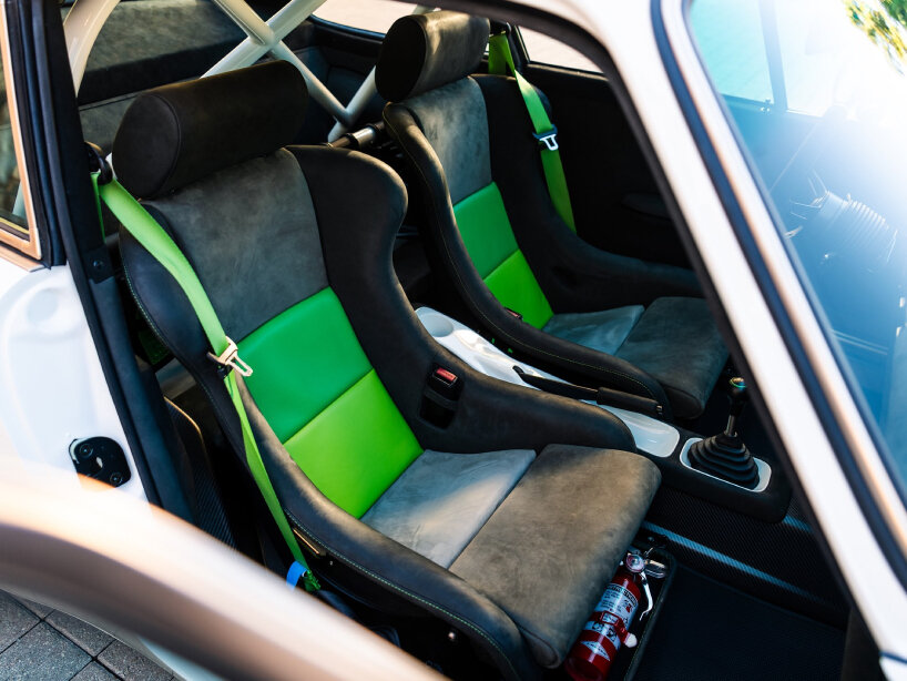 restored 1991 Porsche 911 sports car and its neon-like SR Green-finished Fuchs wheels