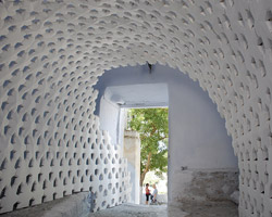 a continuation of the existing rock formations, the hotel is articulated as a series of stepped horizontal planes, courtyards, and gardens.