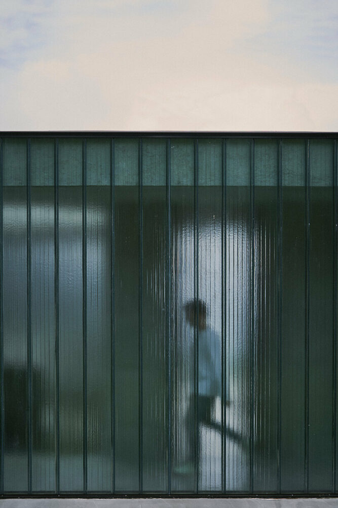 The glass is available in two formats: U-glass and panels. The panels, whether smooth or folded, open the house to its surroundings, blurring spatial boundaries and giving it movement and dynamism. The U-glass elements, on the other hand, eliminate clear images and provide privacy. The metal serves as a second skin for the most intimate area of the house, transforming it into a hermetic volume that overlays the L-shaped first floor. On the other hand, another arrangement of this material connects the two floors, demonstrating its ability to be organic and restless.