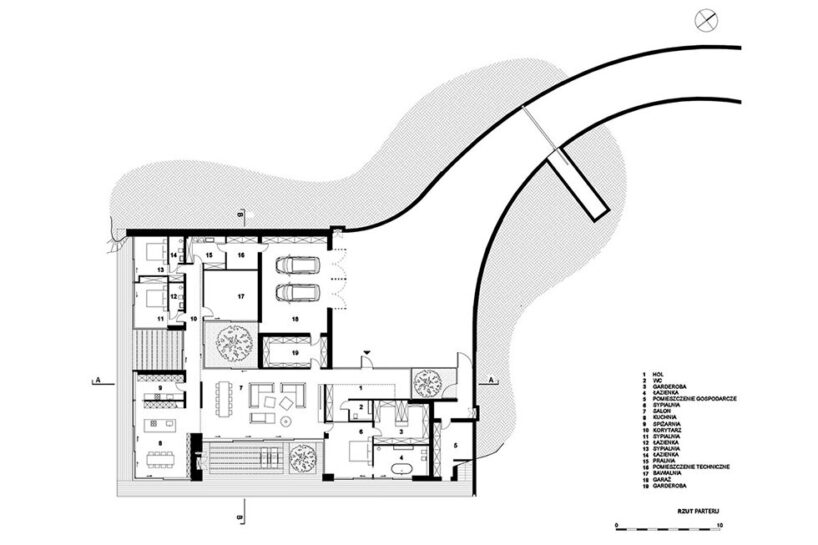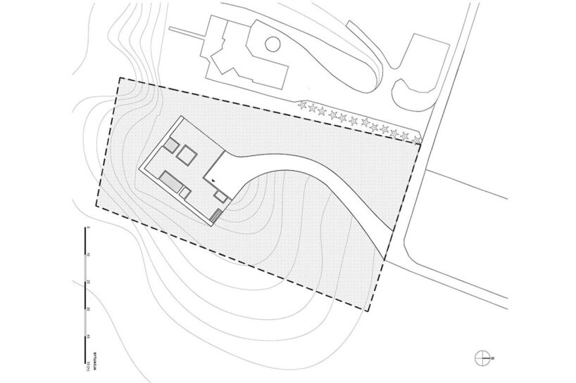 the floor level is sunk into the terrain to reduce visual impact from the promontory