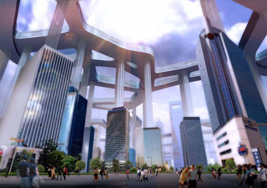 ‘shanghai 2035’ positioned over the city’s skyscrapers