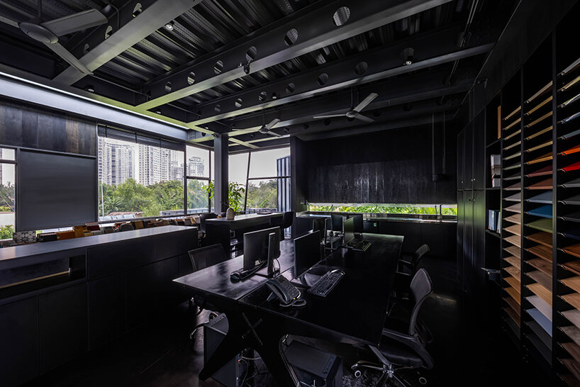 ‘TBD is as much an architectural challenge for our contractor partner to go beyond their line of work and expand their market as it is for us to address the fast-changing future of the city. Foreign as it looks, the building offers a familiar experience. By borrowing the surrounding landscape yet to be developed, the building’s spatial perception embodied the openness that positioned itself in an in-between state, between inside and outside, and embracing the nature of tropical vernacular. This effect is further enhanced by using a monochromatic interior that blurs the hard building line and its corner,’ concludes the practice.