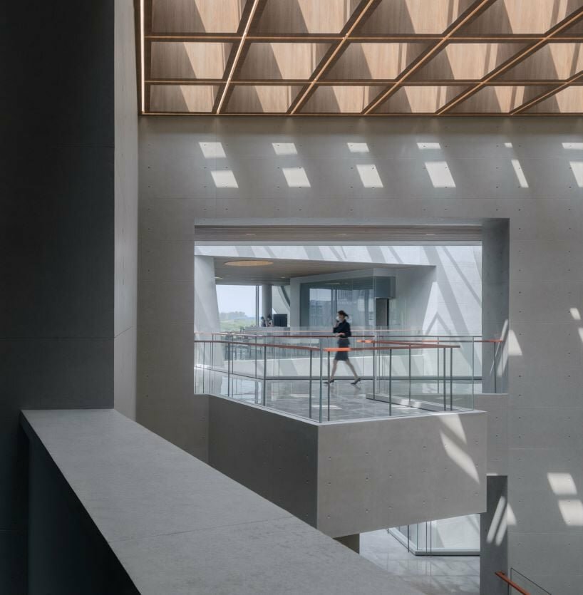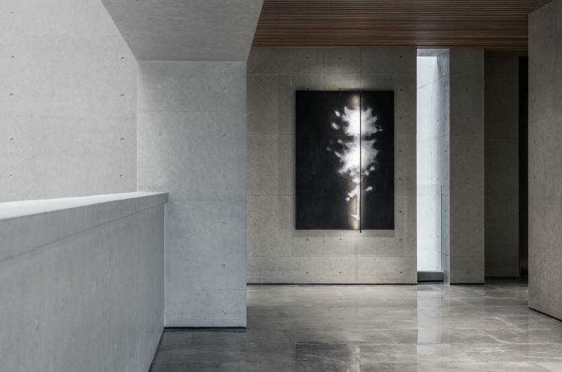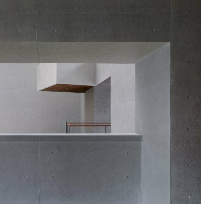 the facade is constructed with fair-faced concrete, emphasizing geometric volume