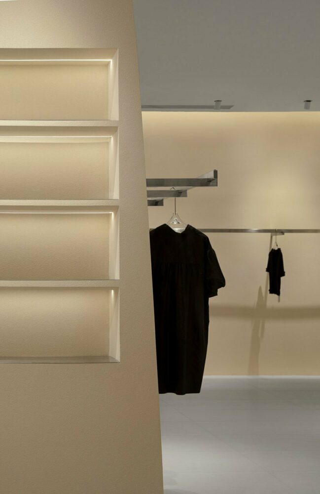 a uniform warm yellow color palette maintains flexibility, with white walls for easy adaptation to brand themes