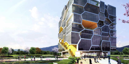 the structure is comprised of hexagonal shaped cells which are metaphor speaks of the individual nations which make up the UN