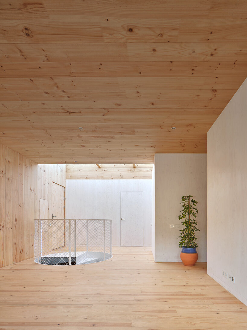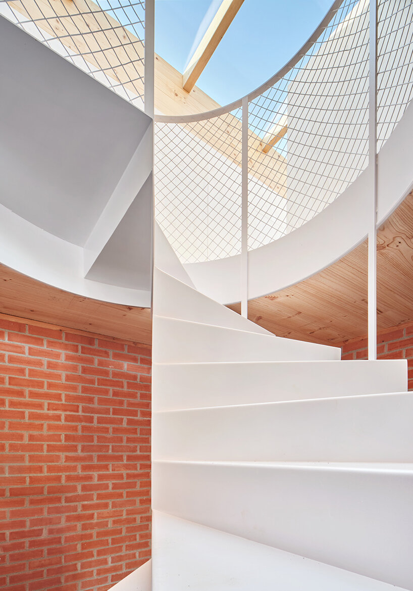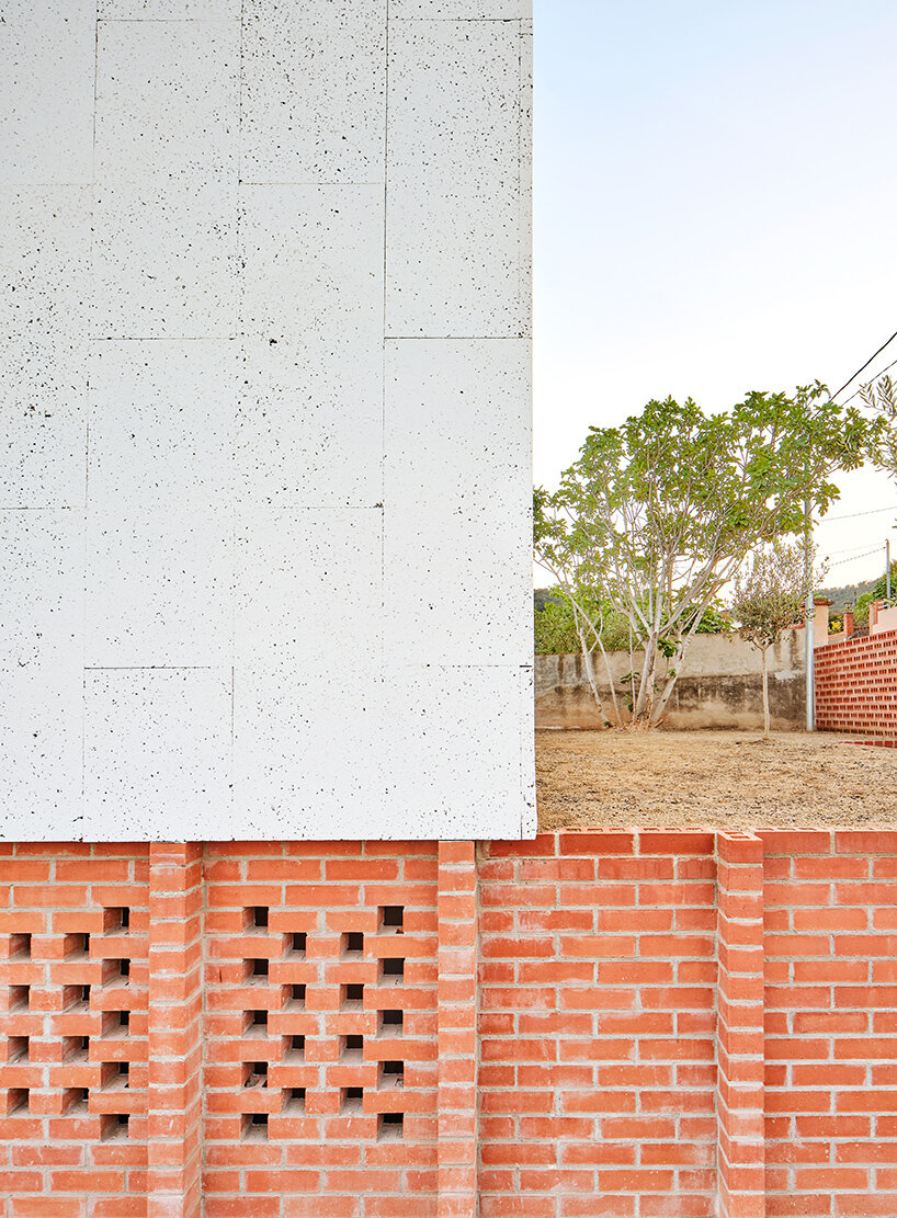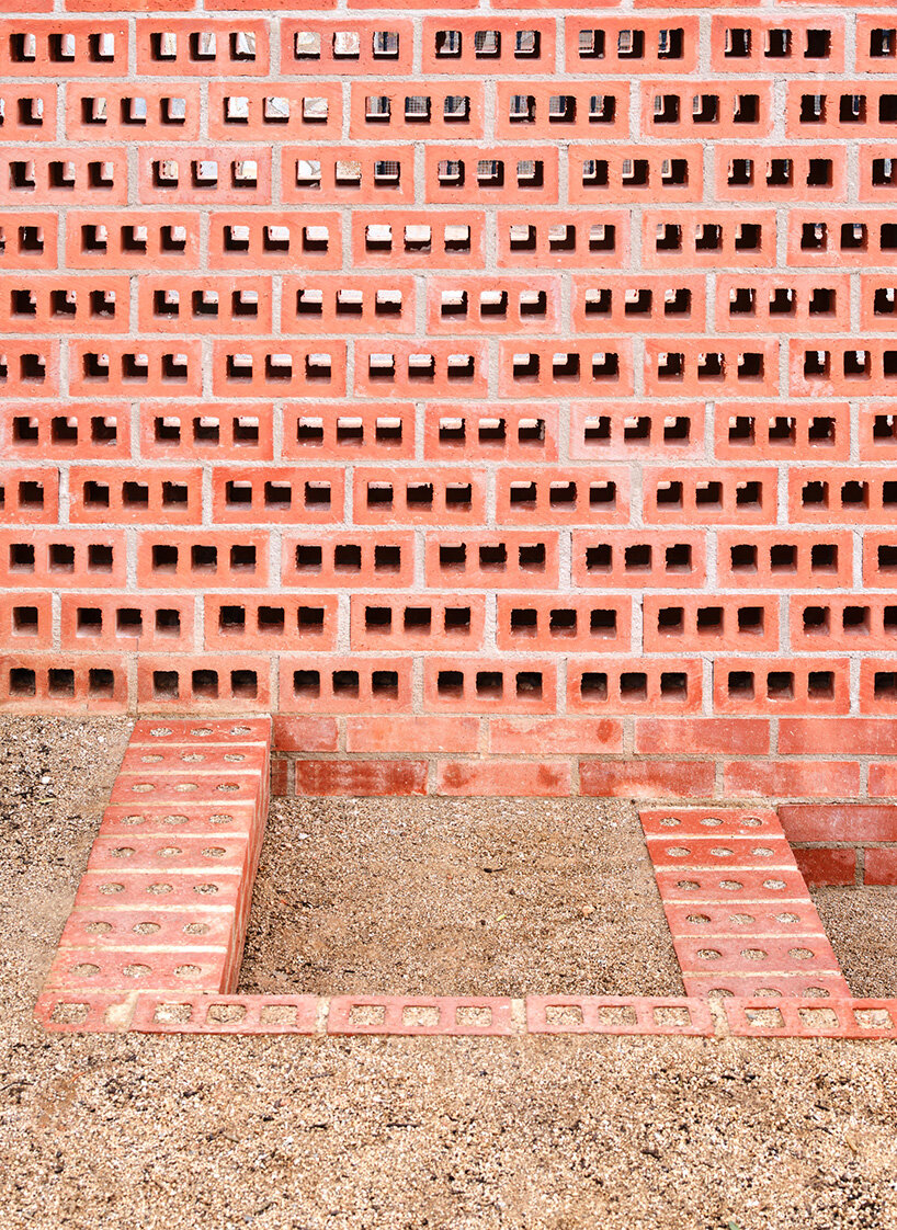 the project sits like a ring placed over the terrain, with its funnel-like roof forming a shaded perimeter walkway and an introverted core.