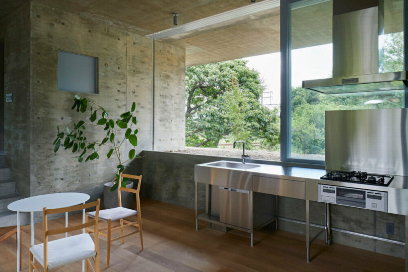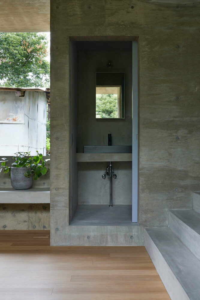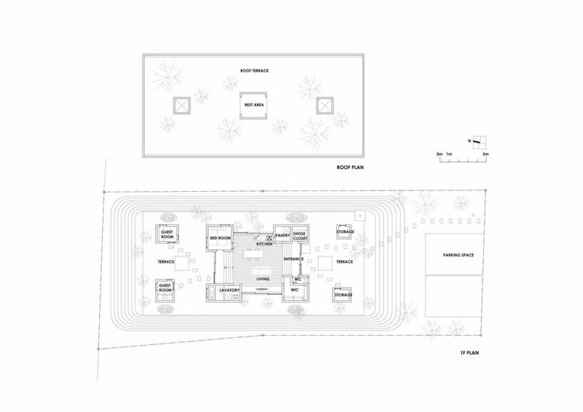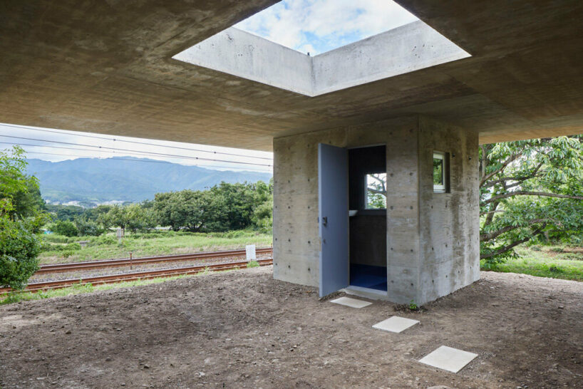 the project sits like a ring placed over the terrain, with its funnel-like roof forming a shaded perimeter walkway and an introverted core.