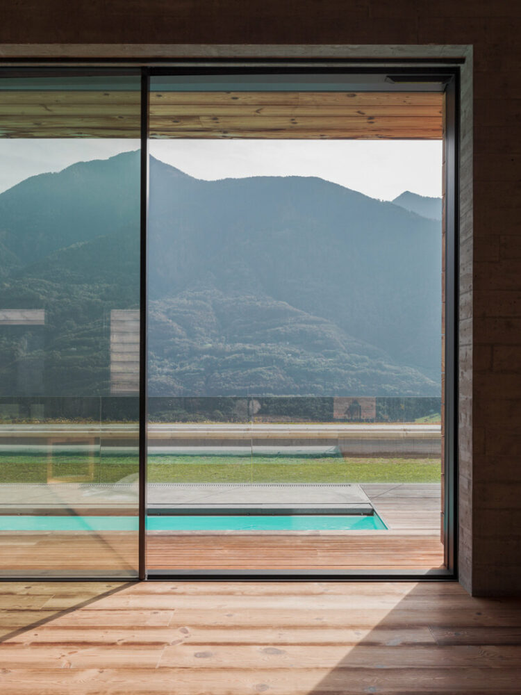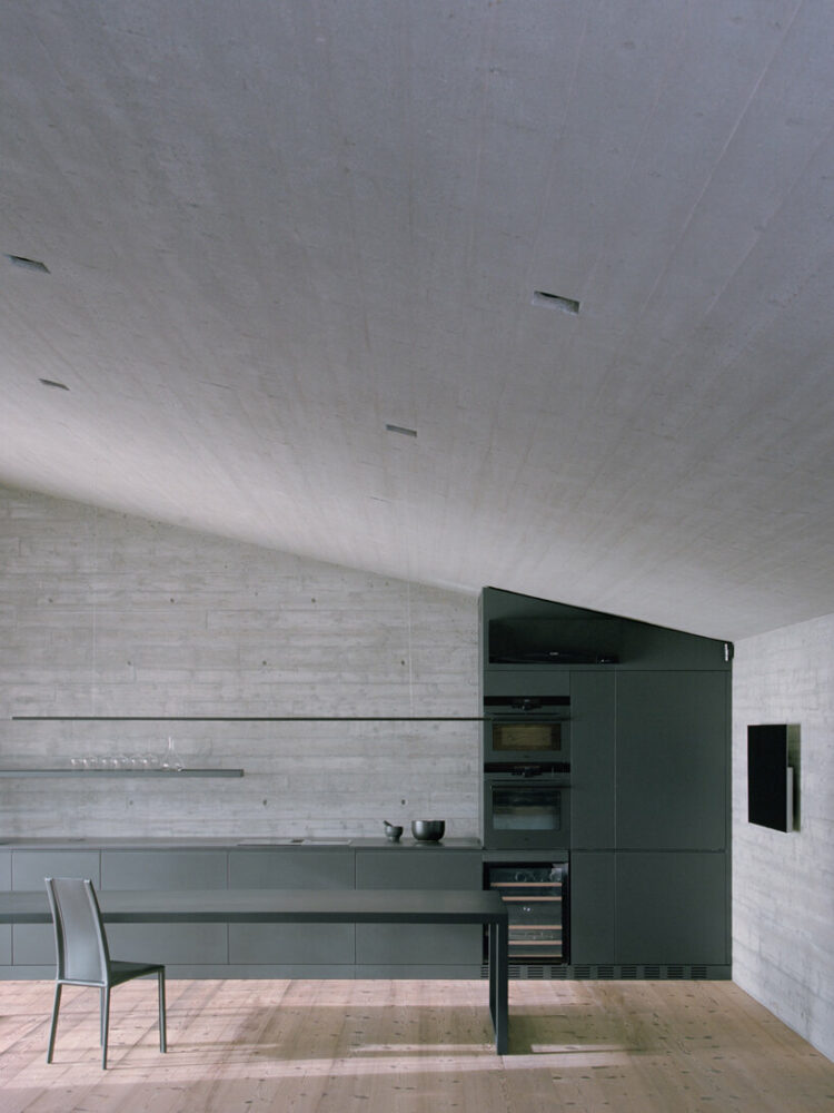 the project sits like a ring placed over the terrain, with its funnel-like roof forming a shaded perimeter walkway and an introverted core.