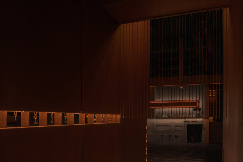 underneath the bar counter are eight spliced concrete doors