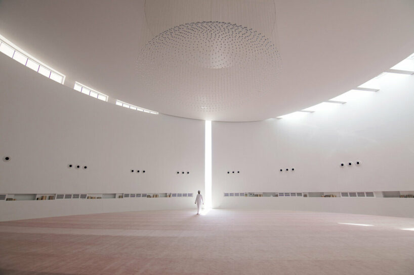 a dome-like chandelier of over 1600 crystal glass balls pays homage to Islamic architectural features