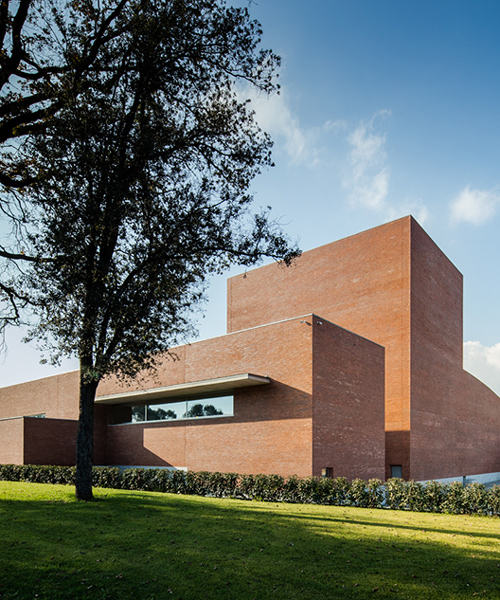álvaro siza forms public auditorium in catalonia with monolithic red brick volumes
